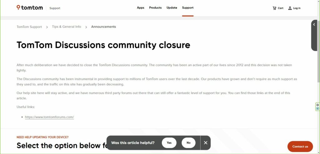 TomTom Discussions community closure